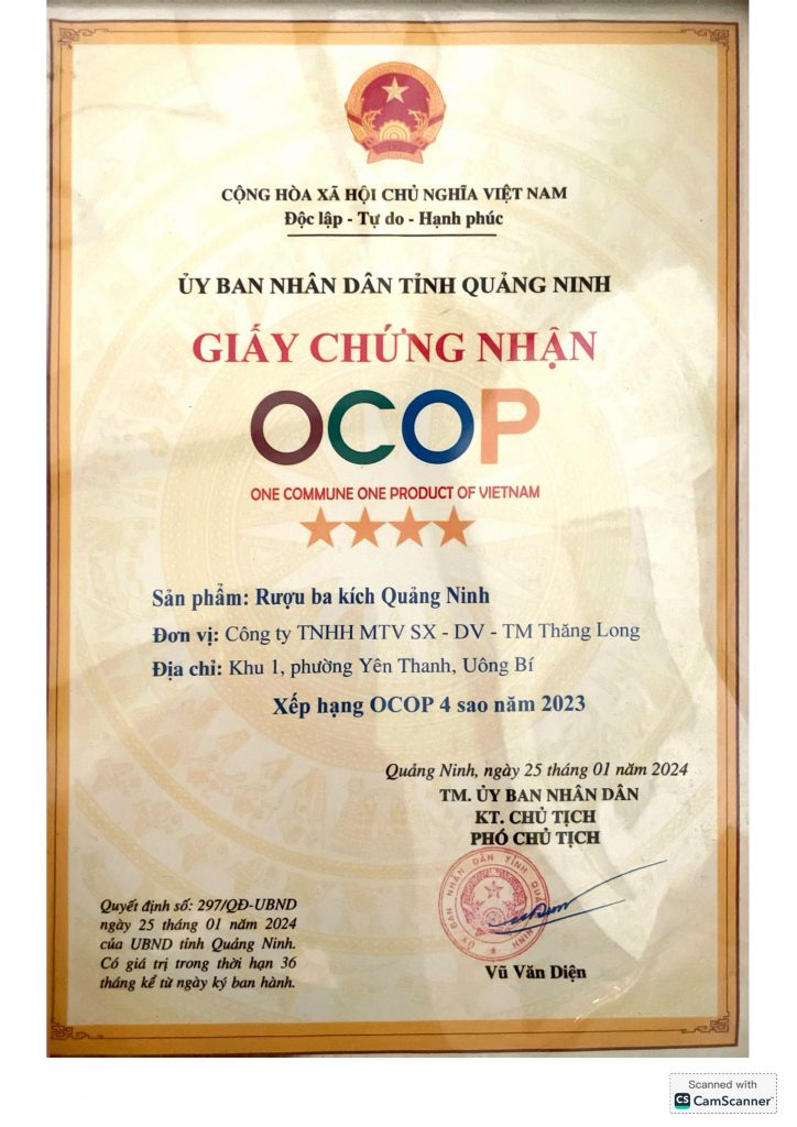Giấy chứng nhận OCOP 4 sao Rượu ba kích